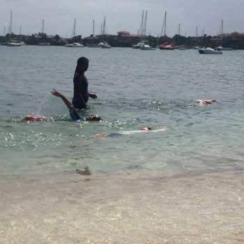 Nathan and a few others learning the back stroke.